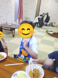 子ども達と一緒に焼きそばとフランクフルトを作りました!