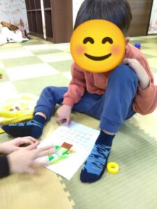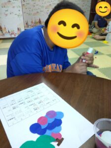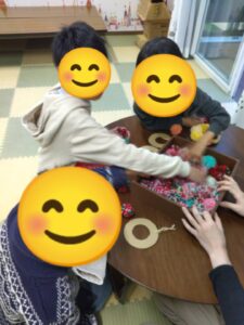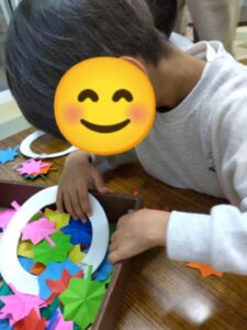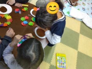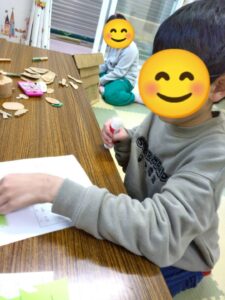 色々なクリスマス飾りを用意して、子ども達に好きな飾りを選んで貼ってもらいました(*^-^*)
