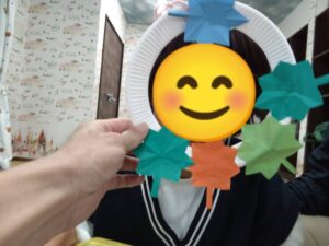 先日の製作で、秋を感じる「もみじのリース」を作りました(*^-^*)
