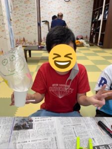ビニール袋に好きな絵を描いて、ふーっと息を吹き込むと大きく膨らみます!(^^)!