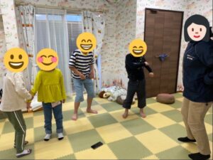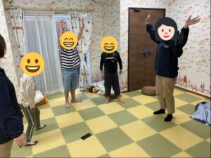 職員の動きを真似しながら音楽に合わせて踊っています♪